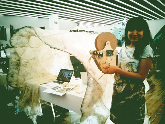 During Fab10- Fab Festival in Barcelona I met Jin Shihui who introduced me to CandyProject, a research project exploring the process of spraying natural fiber to create a non-woven textile that can be used to produce anything from building components to ornamental artifacts.