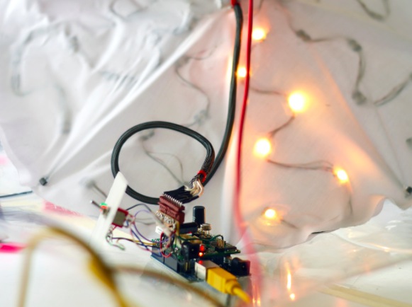Each umbrella serves as a node for measuring CO and NO2 pollution levels and can provide exceptionally granular data to pollution databases and for scientific analysis. Simultaneously, the light visualisations inside the umbrella respond to pollution levels in real time and spread awareness of air quality in the city for its inhabitants. The umbrella uses open hardware and software to gather and interpret data through a built-in sensor array, displays CO and NO2 pollution locally in two modes, and logs the timestamped and geolocated data to the cloud for analysis.