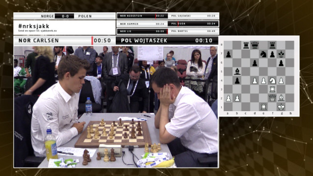 When The Norwegian Broadcasting (NRK) planned the television broadcast of the Chess Olympiad 2014 in Tromsø, Norway, they encountered a challenge: how to mix video, graphics and the results of many ongoing chess games simultaneously, requiring 16 cameras for the games going on at the same time?