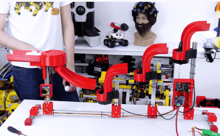 The Coanda effect, as you may or may not know, is what causes flowing air to follow a convex surface. In his latest video, James Bruton shows how the concept can used as a sort of inverted ping pong ball waterfall or staircase. His 3D-printed rig pushes balls up from one fan stage to another, … Continue reading James Bruton demonstrates the Coanda effect with an Arduino-controlled rig